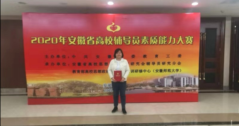 本网讯 11月24日至26日,由省委教育工委主办,省高校思想政治教育研究会辅导员研究分会、教育部高校思想政治工作队伍培训研修中心(安徽师范大学)承办的2020年安徽省高校辅导员素质能力大赛在芜湖市举行,来自全省80余所本专科高校辅导员同台竞技。beat365辅导员许凤麟不畏强手,沉着冷静,凭借扎实的理论功底、丰富的工作经验、缜密的逻辑思维和良好的精神风貌斩获大赛三等奖。
