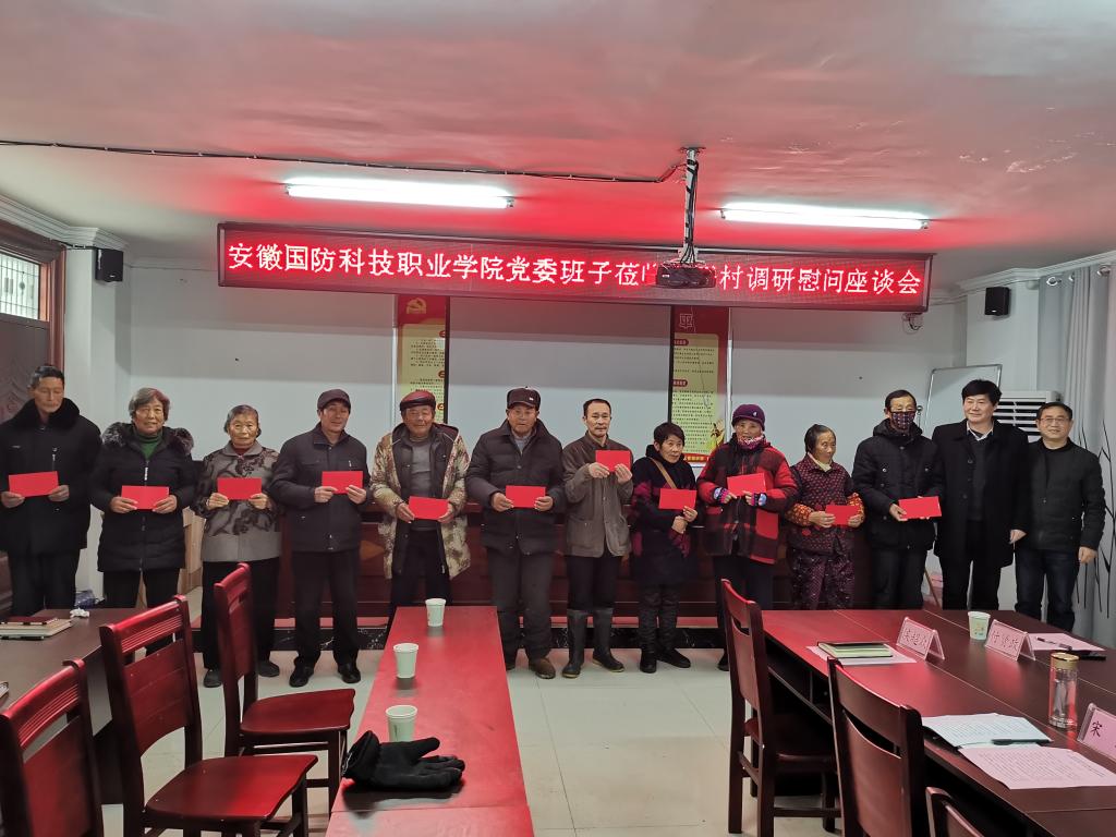 本网讯 2021年1月23日,beat365在线唯一官网党委书记余嗣元一行6人,赴六安市金安区三十铺镇太平村召开调研巩固拓展脱贫攻坚成果同乡村振兴有效衔接座谈会,并对与会脱贫户进行了春节慰问。六安市金安区三十铺镇党委书记项阳、党委副书记崔伟、驻村扶贫工作队成员和村两委干部参加了座谈会。会议由beat365在线唯一官网党委委员、党政办主任李存鹏主持。