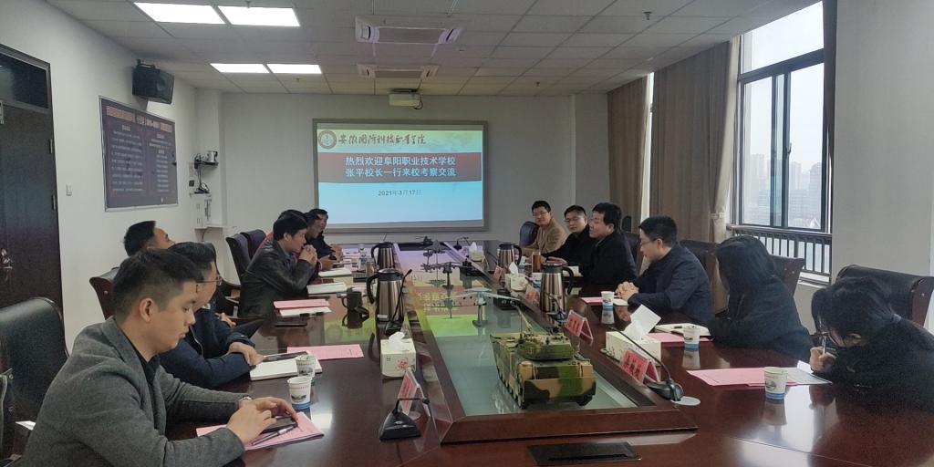 本网讯(电气技术学院 江治国)3月17日,阜阳职业技术学校校长张平、副校长王旭等一行六人来beat365开展中高职合作办学调研交流活动。beat365党委书记余嗣元,校党委委员、信息技术学院院长黄存东,校实训中心主任王胜,电气技术学院党总支书记王希江等热情接待了来访客人,相关职能部门、处室负责人参与了接待与交流。