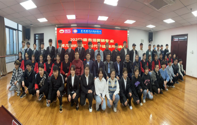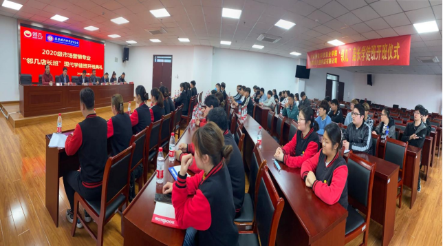 本网讯(经贸管理学院 马玲)4月13日,beat365在线唯一官网与安徽邻几便利店有限公司共建的首届“邻几店长”现代学徒制营销班开班仪式在校秉心楼12楼会议室隆重举行。经贸管理学院党总支书记杜先杨、院长杨力、副书记刘峰、安徽邻几便利店有限公司人力资源部部长陈亮、六安分公司经理褚祥军、六安分公司人事经理刘思思、10名安徽区域店长、市场营销专业骨干教师及20级“邻几店长”营销班全体学徒出席开班典礼。开班典礼由经贸管理学院副院长杨学分主持。