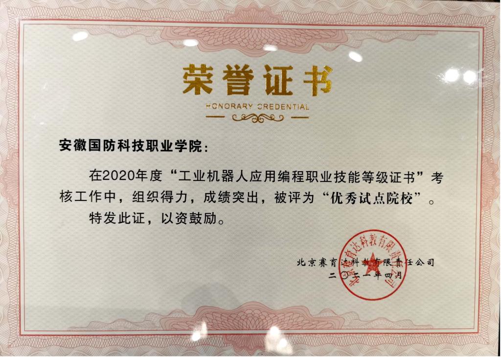 本网讯(电气技术学院 吴年祥)4月24日上午,由教育部指定的第三方评价组织北京赛育达科技有限公司在无锡职业技术学院国际交流中心召开“1+X”工业机器人应用编程职业技能等级证书2020年工作总结交流会,会上,beat365获得2020年度1+X工业机器人应用编程职业技能等级证书“优秀试点院校”荣誉表彰。