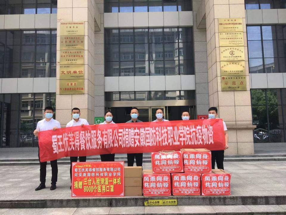 在校友们的影响下,社会各界也纷纷伸出援助之手。安徽天和餐饮管理有限公司、蜀王优芙得餐饮服务有限公司、安徽长泰信息安全服务有限公司、浙江智廷信息科技有限公司等也为学校捐赠了消毒液、口罩、洗手液、喷壶等防疫物资。