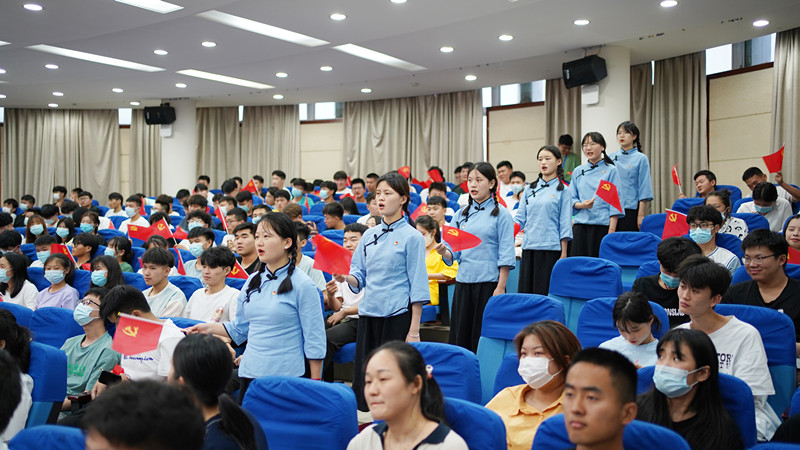 第三环节,全体师生共同观看了《百炼成钢 从石库门到南湖》。作为生活在六安这片红色土地上的主人翁,现场师生在观看短片的过程中被深深地感染着。大党和小船,沧桑与青春,使命与担当,每一份感动都源于一份初心。