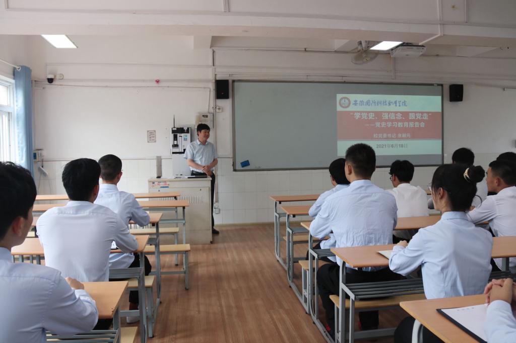 今年是建党一百周年。鲜红的党旗,经历了100年的洗礼,显得更加飒爽多娇;庄严的党徽,经过了100载的锤炼,显得更加坚如磬石。报告会首先,五名学生代表上台交流了自己的学党史感悟,同学们的发言慷慨激昂、感情真挚,真正的学有所思,学有所感,学有所悟,学有所得。也得到了余书记的肯定与鼓励。