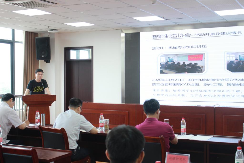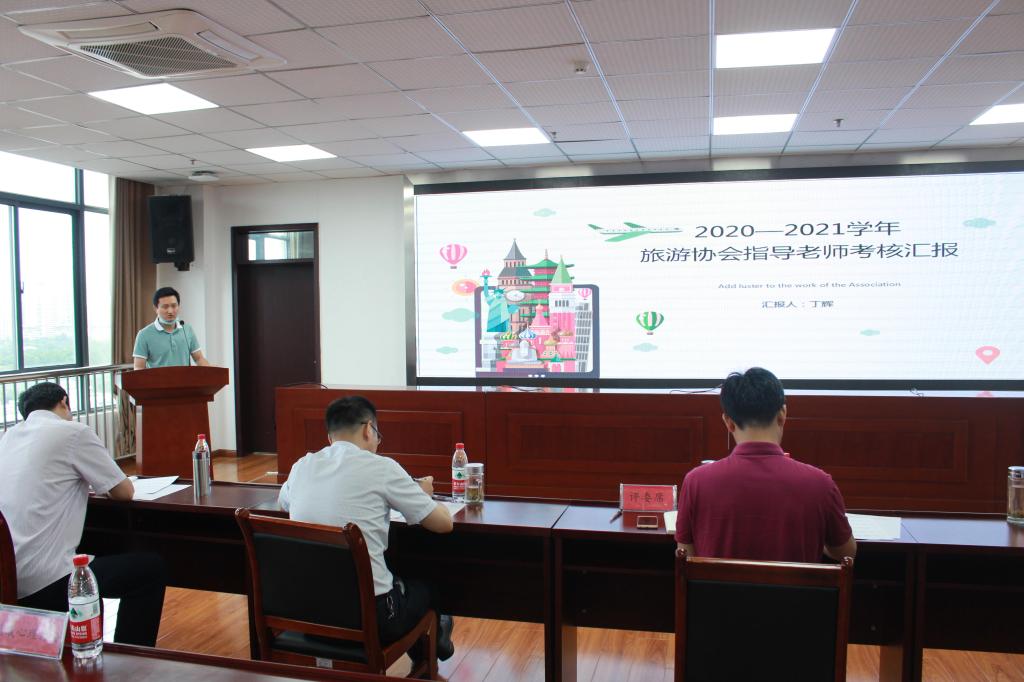 各社团指导教师围绕考核要求,逐一汇报一学年的社团工作。beat365学生社团经过调整,目前有23个学生社团,包括专业技能、文体爱好、志愿服务等类型,社团工作汇报充分展示了学生社团在提升学生课余生活质量、活跃校园文化氛围上的重要作用,让大家看到了同学们在钻研专业技术、培养兴趣特长、熏陶艺术审美、增强社会实践等方面的风采与追求,也展示了同学们异彩纷呈的社团生活。评审们认真聆听了各社团指导教师的工作汇报,并围绕社团建设、依据考核细则进行提问,也从提高社团工作规范性、社团活动创新性等方面给出了建议。会上,各社团通过听取汇报,学习了工作经验,增强了社团交流。