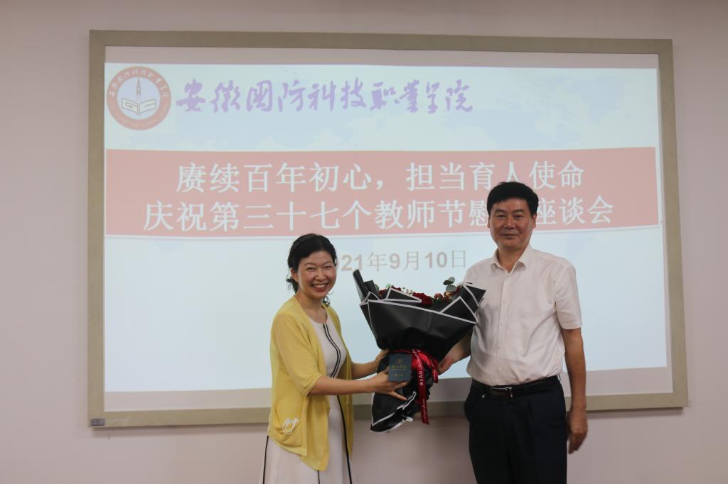 本网讯 9月10日下午,学校在秉心楼十一楼第一会议室召开以“赓续百年初心,担当育人使命”为主题的教师节慰问座谈会。学校党委书记余嗣元与教职工代表欢聚一堂,共话教育情、共绘国防梦。会议由党委副书记冯伦久主持,组织人事处处长付贤政出席会议。