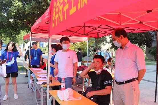 校党委书记余嗣元在报到现场指导工作