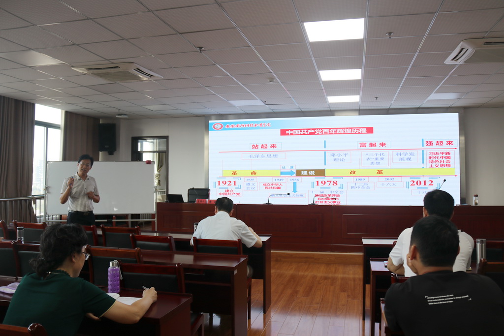 本网讯 按照党史学习教育安排,9月16日,校党委委员、副校长袁旗为学校教职工讲授学习贯彻习近平总书记“七一”重要讲话精神专题党课。宣传部、思政部、学生处、保卫处、总务处、财务处、国资办、团委等部门教职工30余人参加。