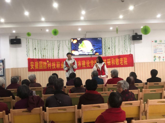10月13日,城市建设学院晨曦志愿者服务队来到六安市银和老年公寓,为敬老院的老人表演精心准备的歌曲、朗诵、舞蹈等节目,用自己的实际行动传递着浓浓的敬老情,表达对老人的深深祝福。老人们为志愿者们鼓掌,全场充满了欢乐喜庆的氛围。