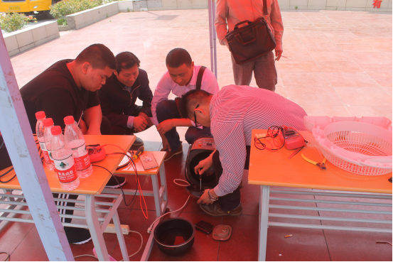 学校每年定期开展职教周活动,学生们走进企业和社区等地开展社会服务,图为信息技术学院和电气技术学院师生在春江社区开展义务维修活动