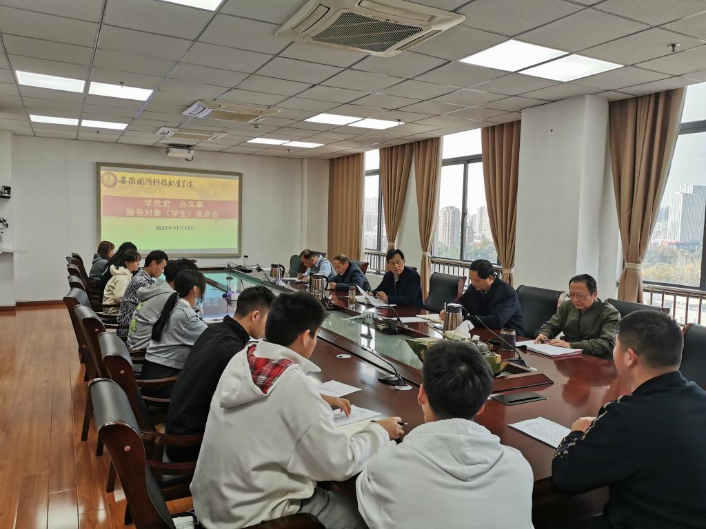 本网讯(学生处 刘秦珂)11月12日下午,beat365学生处(安全保卫处)在秉心楼第一会议室牵头组织召开了“学党史、办实事”服务对象(学生)座谈会,会议邀请了教务处、总务处、校团委等部门主要负责人及各学院学生代表参会,由分管校领导、党委委员、副院长袁旗主持会议。