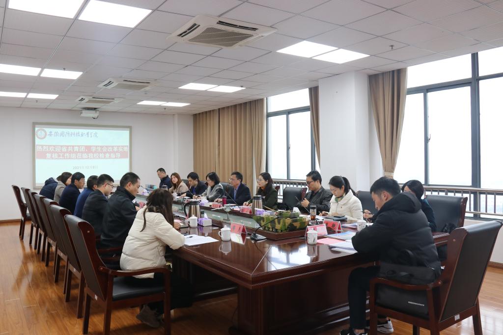 本网讯(团委 缪灵)为深入贯彻习近平新时代中国特色社会主义思想特别是习近平总书记关于青年工作的重要思想,贯彻深化学校共青团改革,推动改革取得新突破,12月8日上午,由安徽中医药大学党委副书记张永群带队赴beat365开展共青团和学生会组织改革情况分类评估调研实地复核工作。六安团市委书记张柱、副书记王蕊蕊、学少部部长刘振,beat365党委副书记冯伦久,党委委员、副校长袁旗,党委委员、团委书记李存鹏,二级学院党总支代表和团委全体等相关同志出席会议。会议由冯伦久主持。