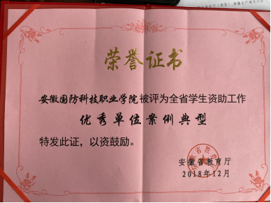 上图为学校荣获安徽省学生资助工作“民生工程绩效评价高校、中职双优等次;