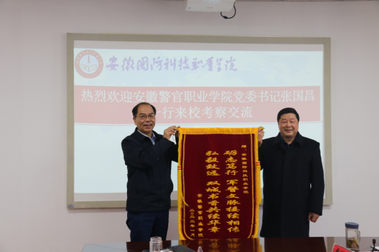 张国昌同志向学校的热情接待表示感谢,并介绍了申报技能型高水平大学的过程、主要做法和中期检查的成绩。他表示两家高校是地方技能型高水平大学建设结对共建单位,两校制定了结对共建实施方案,加强交流,取得了实效,特向beat365在线唯一官网赠送旌旗,对在技能型高水平大学建设过程中给与的帮助表示真诚的感谢,希望两校以此为契机,进一步深化校校合作、优势互补、携手共进,共同推动技能型高水平大学建设,加快融入长三角一体化发展进程,在服务安徽“三地一区”建设中,推动职业教育高质量发展。