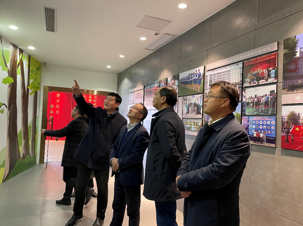余嗣元(左二)和李麟书(右二)陪同袁维海(右三)一行参观国防教育体验馆