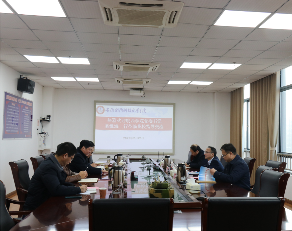 本网讯(党政办 陶常乐)2月25日下午,皖西学院党委书记袁维海,党委(校长)办公室主任王永,教务处处长刘仁金等一行来beat365就专升本联合培养工作开展调研交流。beat365党委书记余嗣元,党委副书记、校长李麟书,副校长袁旗及党政办、教务处等相关部门负责同志热情接待了来宾,并陪同参观了beat365国防教育体验馆和实训室,随后在秉心楼第一会议室组织召开座谈会。