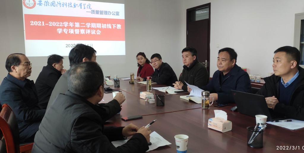 听课制度是学校教学质量监控体系的重要内容,“走进课堂”是学校历年来的传统。听课结束之后,质量管理办公室主任黄存东教授主持召开2021-2022学年第二学期期初线下教学专项督查评议会,校党委委员参加了此次会议。会上就开学第一堂课反映出的问题进行了讨论,并提出改进要求。学校将始终坚持教学中心地位,深入开展“课堂革命”活动,提升教学质量,更好地服务于学生成长成才。