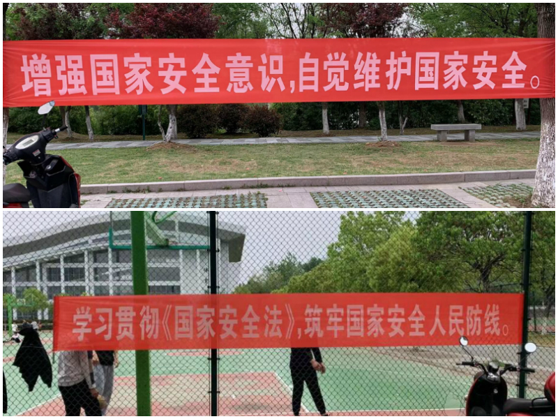 宣传部在学校道路周边显眼位置悬挂宣传标语,在校园中突出宣传《国家安全法》等法律法规,为第七个全民国家安全教育日系列活动的开展营造了良好氛围。