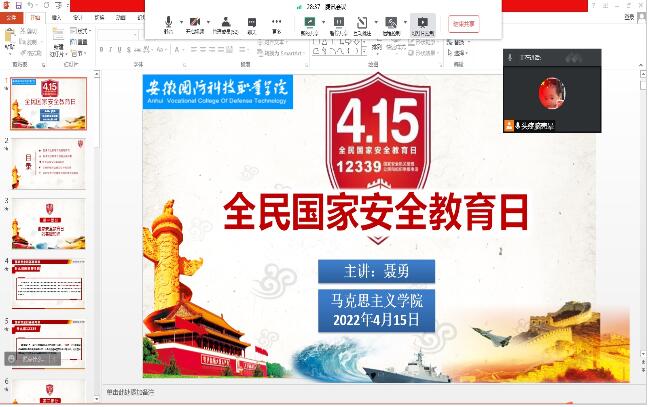 4月13日-15日,马克思主义学院全体思政课教师结合疫情防控实际,在线上开展了国家安全教育专题宣讲活动,此次活动让大学生了解了维护国家安全的重要意义,动员大学生树立坚决防范、制止危害国家安全行为的意识,树立“总体国家安全观”。同时,各位老师还结合学校疫情防控的实际积极宣传习近平法治思想,深入讲授《国家安全法》相关知识,引导大学生不信谣、不传谣,遵纪守法,同心战疫。