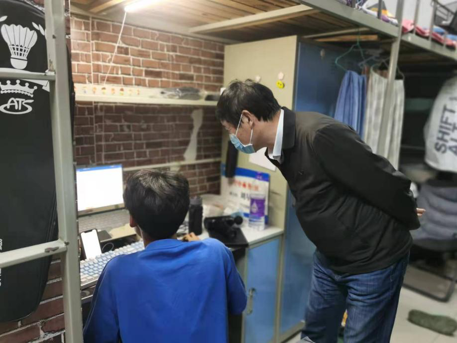 在学生宿舍,余嗣元仔细查看了阳台、卫生间及各个角落的卫生状况,对存在的问题提出了整改意见,并与学生们亲切交流,询问晨午晚检、通风消毒等疫情防控措施落实情况,了解近期线上教学开展情况,日常生活中是否存在困难等。