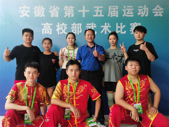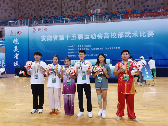 本网讯(公共课教学部 张照金)7月26日至29日,安徽省第十五届运动会高校部武术比赛在滁州高教科创城文体中心手球馆举行。本次比赛由安徽省人民政府主办,安徽省教育厅、安徽省体育局、滁州市人民政府承办,来自全省54所高校500多名运动员参加了本次比赛。