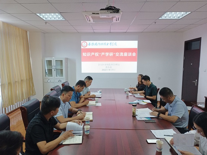 随后,参会教师代表分别就产教融合、项目开发、专利申请、奖励制度等与六安皖智知识产权运用有限公司进行了深入交流。