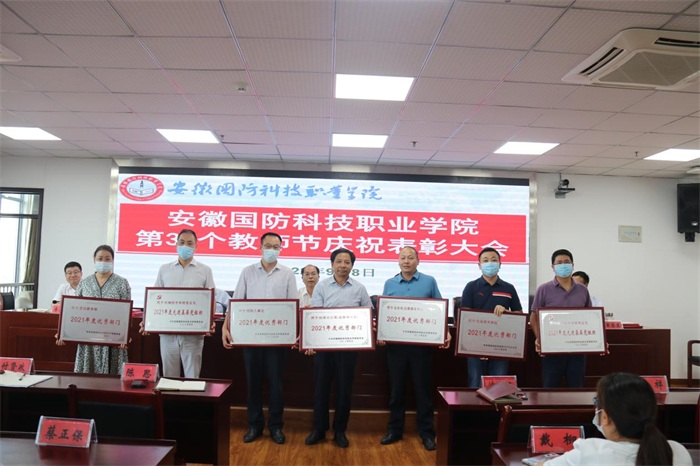 会上,党委副书记冯伦久同志宣读省委军民融合办发来的教师节慰问信。纪委书记丁守宝同志宣读了《关于通报表彰2021-2022学年先进集体和优秀个人的决定》。与会校领导分别为受表彰的先进集体、先进个人颁发了奖牌和证书。