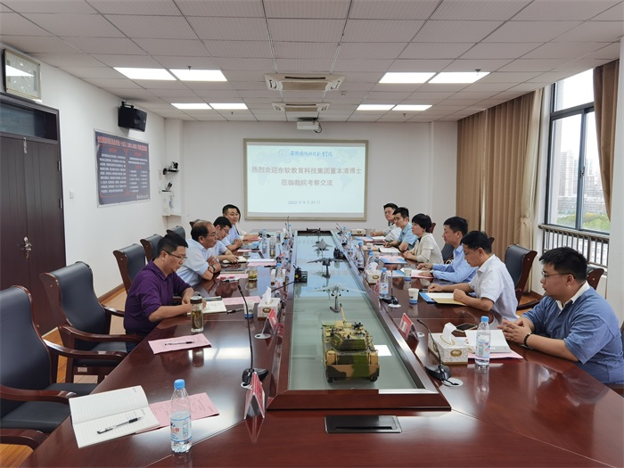 本网讯 9月21日,东软教育科技集团副总裁董本清博士带队来beat365考察交流,学校党委副书记、校长李麟书,校党委委员、副校长李存鹏,校党委委员、信息技术学院院长沙有闯,信息技术学院党总支书记王胜等同志参加了交流会,会议由沙有闯主持。