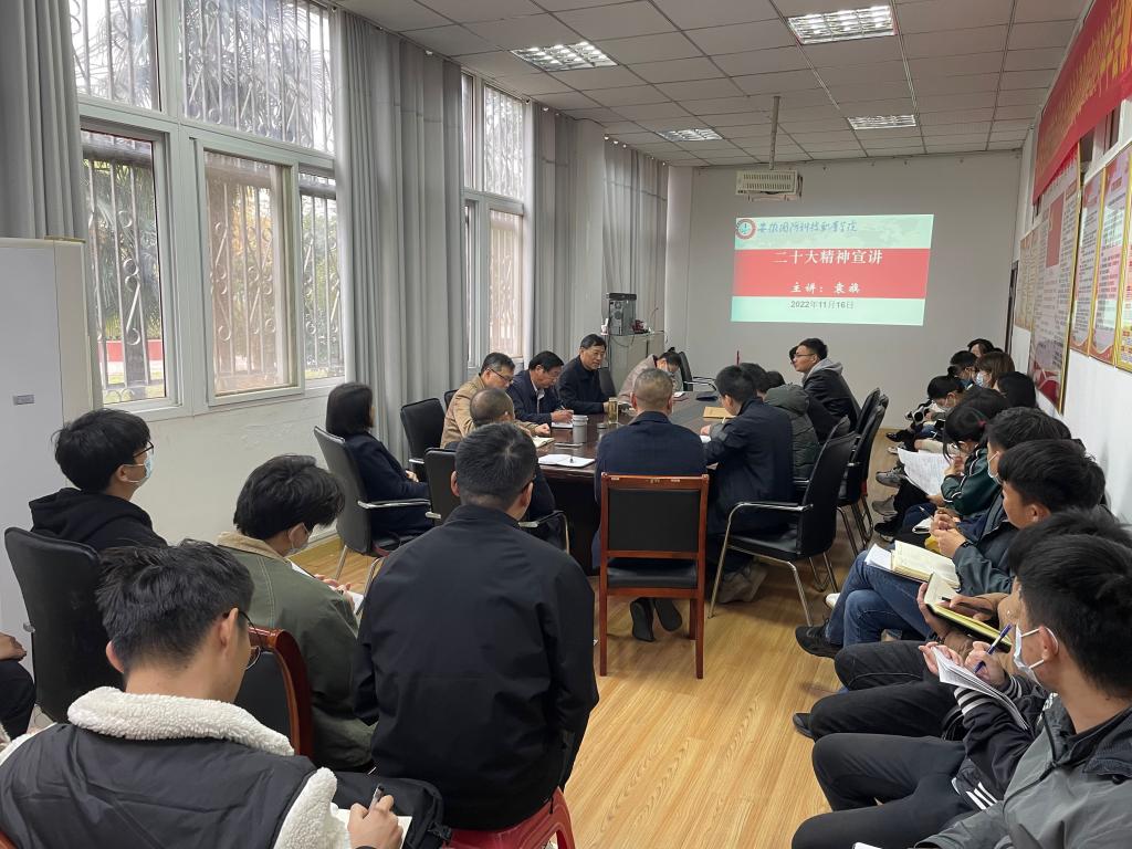 袁旗结合党的二十大报告,从新时代十年伟大变革的里程碑意义、马克思主义中国化时代化的精神实质、中国式现代化的丰富内涵和本质要求、全面建设社会主义现代化国家的目标任务等六个方面的深刻认识,作了系统梳理和深入阐释,还为电气技术学院师生解读了党的二十大报告在经济建设、科教人才、社会建设、生态文明建设等方面作出的一系列战略部署。他强调,我们要认真学习领会党的二十大精神,全面贯彻习近平新时代中国特色社会主义思想,牢记空谈误国、实干兴邦,坚定信心、同心同德,埋头苦干、奋勇前进,为全面建设社会主义现代化国家团结奋斗!