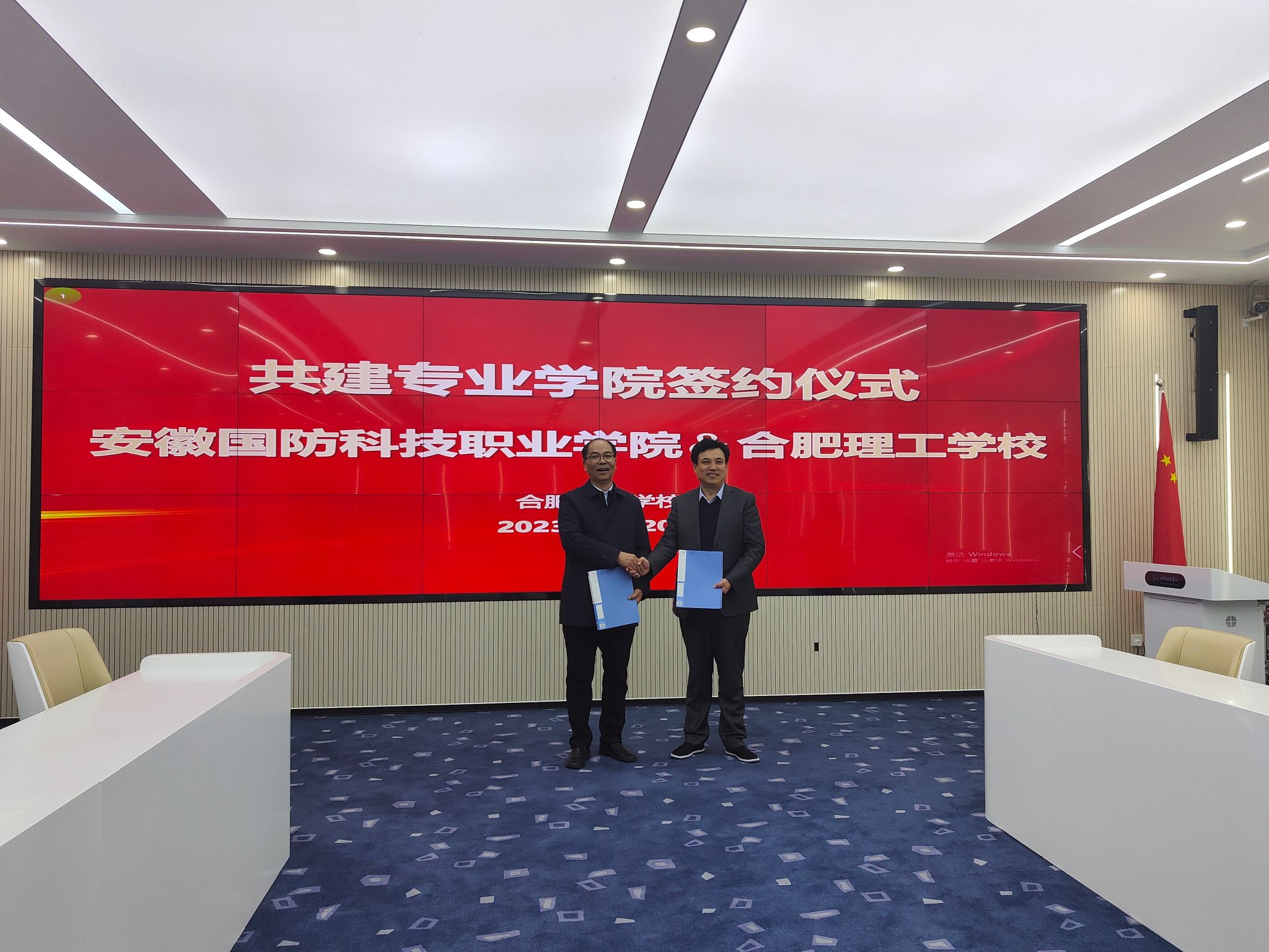 本网讯 为全面落实《教育部 安徽省人民政府关于整省推进职业教育一体化高质量发展加快技能安徽建设的意见》(皖政秘〔2021〕221 号),加快构建现代职业教育体系,促进优质资源共享,3月20日,校长李麟书携教务处、经贸管理学院、机械技术学院负责人一行5人,赴合肥理工学校签订高职专业学院联合培养协议。