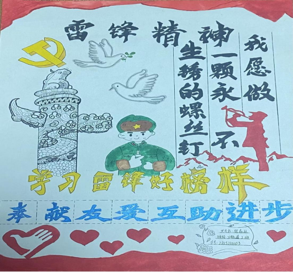 坚定理想信念,深刻把握雷锋精神的时代内涵。校团委和各二级学院积极开展“传承雷锋精神 争做时代新人”主题宣传教育活动,通过主题团日、主题班会、社团活动、座谈会、诗歌朗诵等形式,重温雷锋同志的先进事迹、经典话语,在团员青年中大力弘扬雷锋精神、深入学习宣传贯彻党的二十大精神,用活红色资源,创新服务形式,推动红色文化和社会主义核心价值观深入人心,培养广大青年爱国爱校的无私奉献情怀。