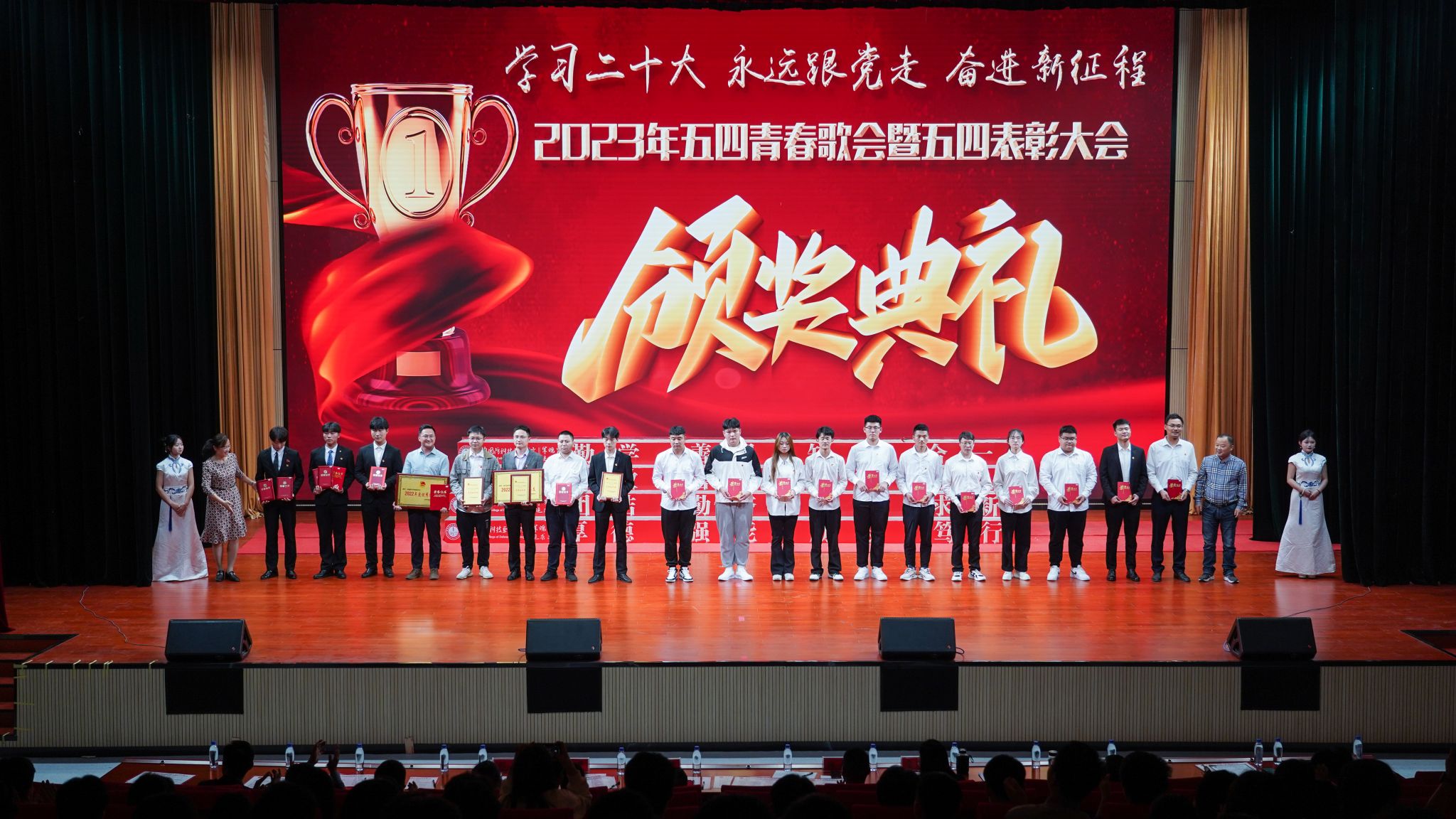 本网讯(校团委 罗丞筠)为纪念五四运动104周年,进一步弘扬“爱国、进步、民主、科学”的五四精神,激发青年爱国情怀,丰富学生的校园文化生活。5月10日,beat365“学习二十大 永远跟党走 奋进新征程”2023年五四青春歌会暨五四表彰大会在产教融合基地多功能报告厅成功举行。