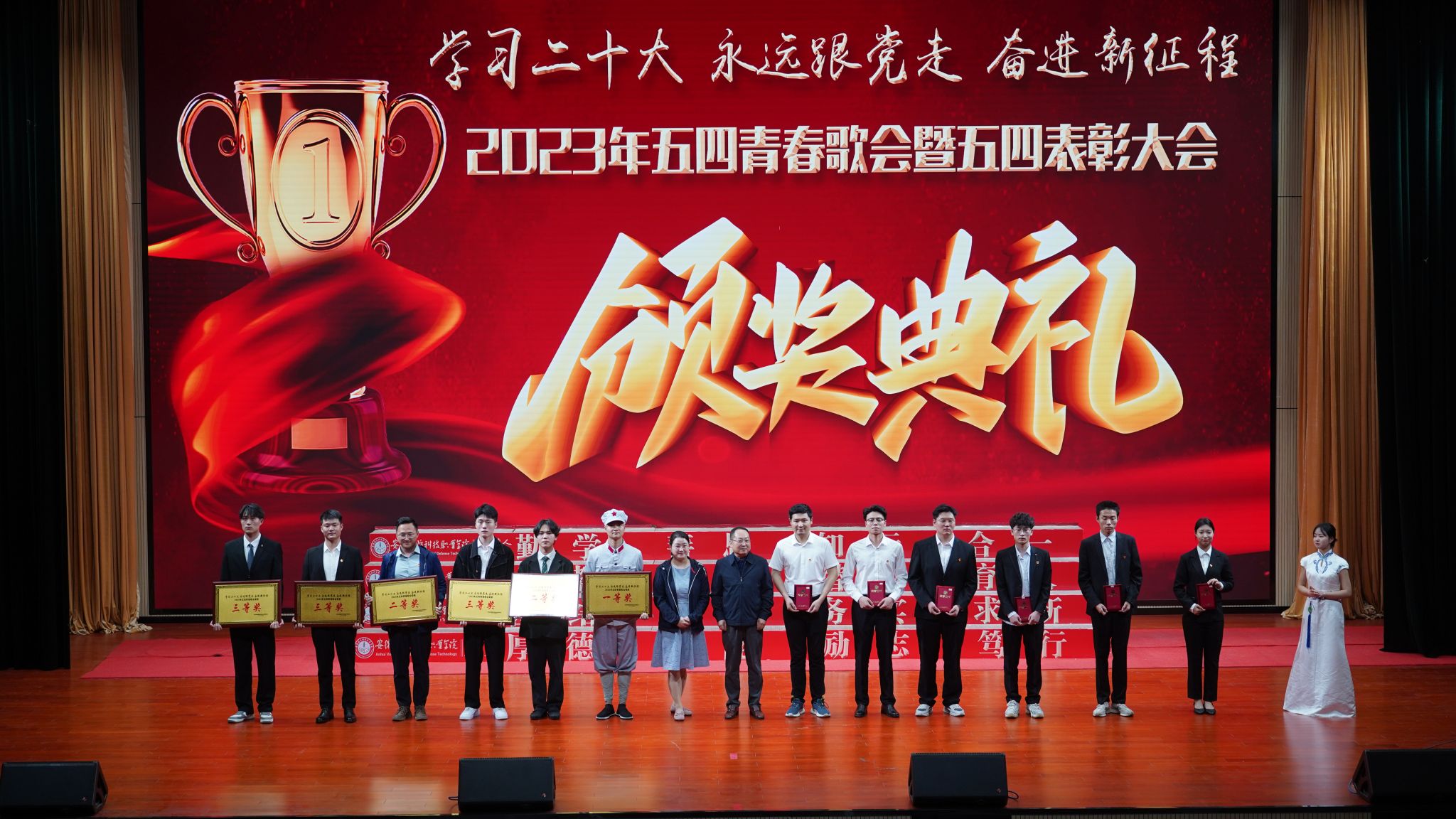 最后,与会领导分别对2022年度全校共青团工作中涌现出的优秀集体和先进个人进行表彰颁奖。大会还为第八届中国国际“互联网+”大学生创新创业大赛、第十六届安徽省大学生职业规划设计大赛等获奖集体和个人颁发了证书。
