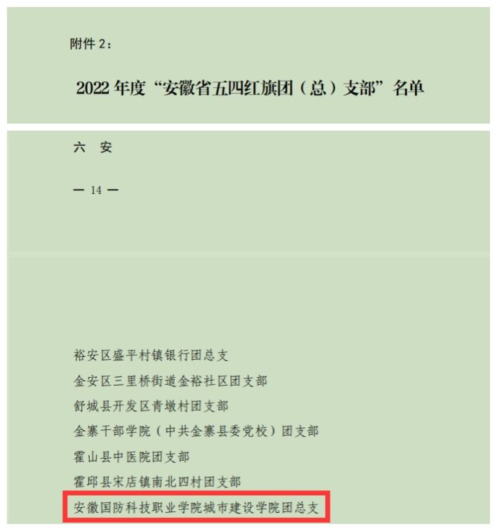 城市建设学院团总支获2022 年度“安徽省五四红旗团(总)支部”荣誉称号