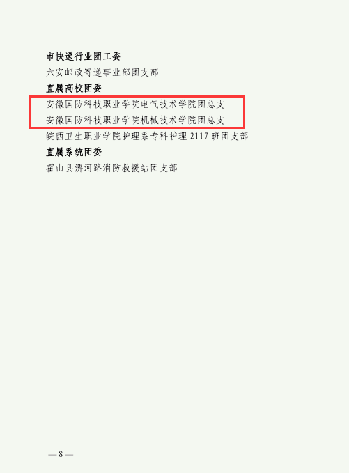 电气技术学院团总支、机械技术学院团总支获“六安市五四红旗团(总)支部”荣誉称号