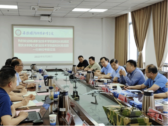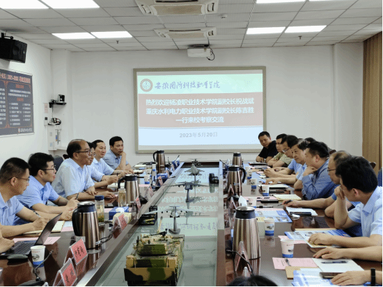 本网讯(教务处 刘星怡) 5月20日,杨凌职业技术学院副校长祝战斌、重庆水利电力职业技术学院副校长陈吉胜一行来校考察交流,校党委副书记、校长李麟书热情接待了来宾,并在秉心楼第一会议室进行了座谈。校领导袁旗、李存鹏及相关处室负责人参加座谈会。