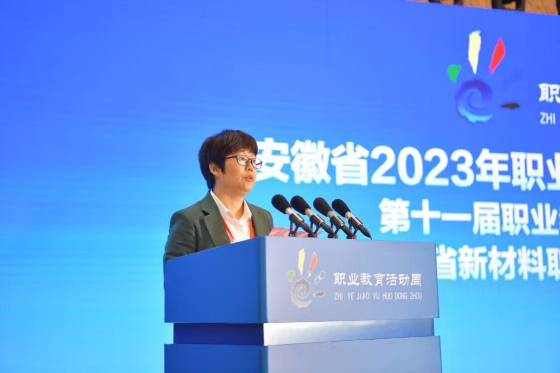 教师代表王丽在安徽省2023年职业教育活动周启动仪式上发言