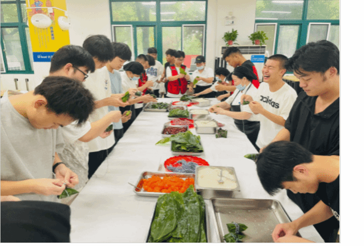 伴随着美食还有各种好玩的游戏和互动活动,火爆网络的青蛙玩偶在餐厅里活蹦乱跳,和同学们互动猜拳;一群稚气未脱的孩子们在教练的带领下表演了中国传统武术;紧张又刺激的指压板跳绳和投篮游戏,激活了同学们的运动细胞;一声锣鼓把同学们的注意力都吸引过来了,原来是精彩的川剧变脸!演员的精彩表演赢得在场同学的阵阵喝彩。每位来到餐厅的同学还都获得了一张幸运刮刮卡,奖品从拉杆箱、乳胶枕到水杯、酸奶,凡是参与活动的同学都不会空手而归。美食节活动临近端午节,餐厅还开展了师生包粽子活动,同学们积极参与,自己动手去制作,餐厅将同学们包好的粽子煮好后又分发给大家,每个人都享受到自己的劳动成果。同学们纷纷表示,学校举办这样的美食节,有美食、有表演、有游戏互动,真是太解压了,真希望学校能天天开展这样的活动。