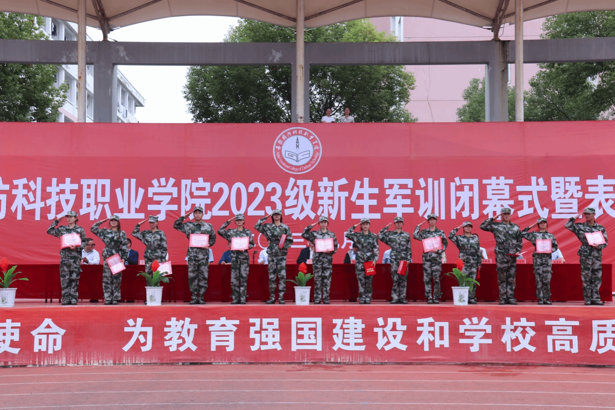 袁旗宣读了军训表彰文件。校领导为在本次军训中表现优异的优秀中队、内务评比获奖寝室、优秀训练标兵进行表彰颁奖。受到表彰的同学纷纷表示会珍惜荣誉、戒骄戒躁,虚心好学,刻苦钻研,继续保持在军训中养成的良好的生活习惯和军队的优良作风,在大学校园里实现人生华美的飞跃,努力成长为能堪大任、勇挑重担的高素质技术技能型人才。