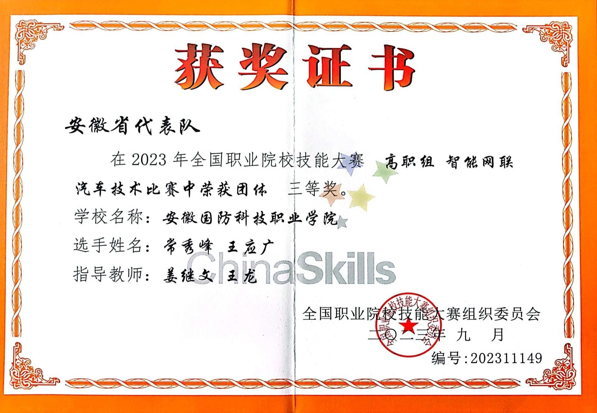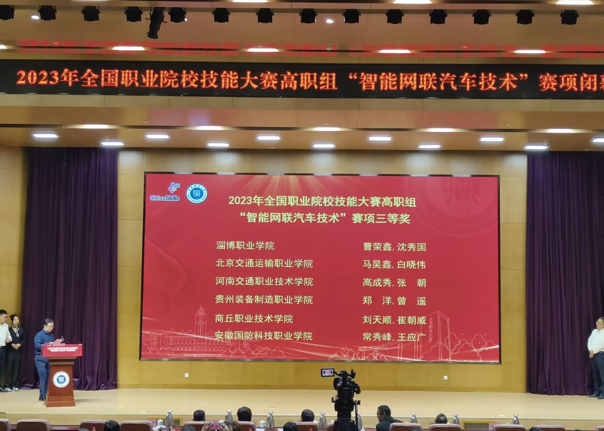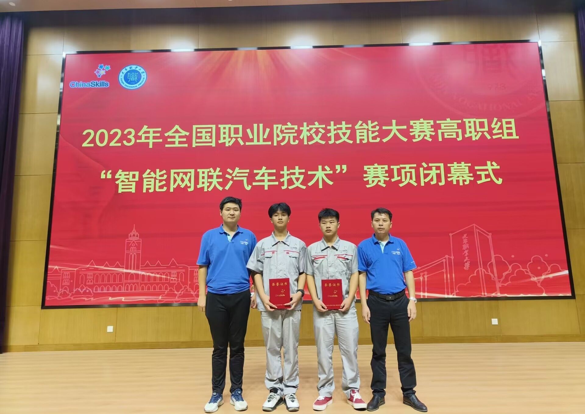 本网讯(汽车技术学院 王龙)近日,2023年全国职业院校技能大赛高职组“智能网联汽车技术”赛项在天津职业大学举行。来自全国各省市的60支代表队同台竞技,经过两天的激烈角逐,beat365参赛学生常秀峰、王应广荣获全国三等奖。