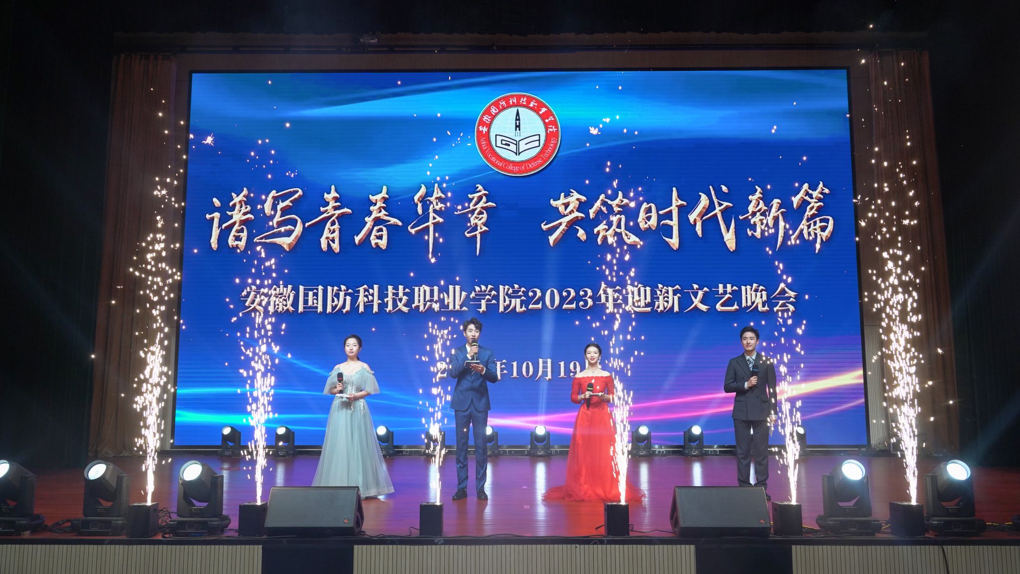 本网讯(团委 罗丞筠)怦然“新”动,满“新”欢喜。10月18日至19日晚,由校团委主办,各二级学院承办的“谱写青春华章 共筑时代新篇”2023年迎新文艺晚会在产教融合基地多功能报告厅隆重举行。校领导余嗣元、徐正红、冯伦久出席晚会,各职能部门负责人、各二级学院负责人、各学院辅导员和2023级新生代表齐聚一堂,共赏这场极富视听享受的盛宴。