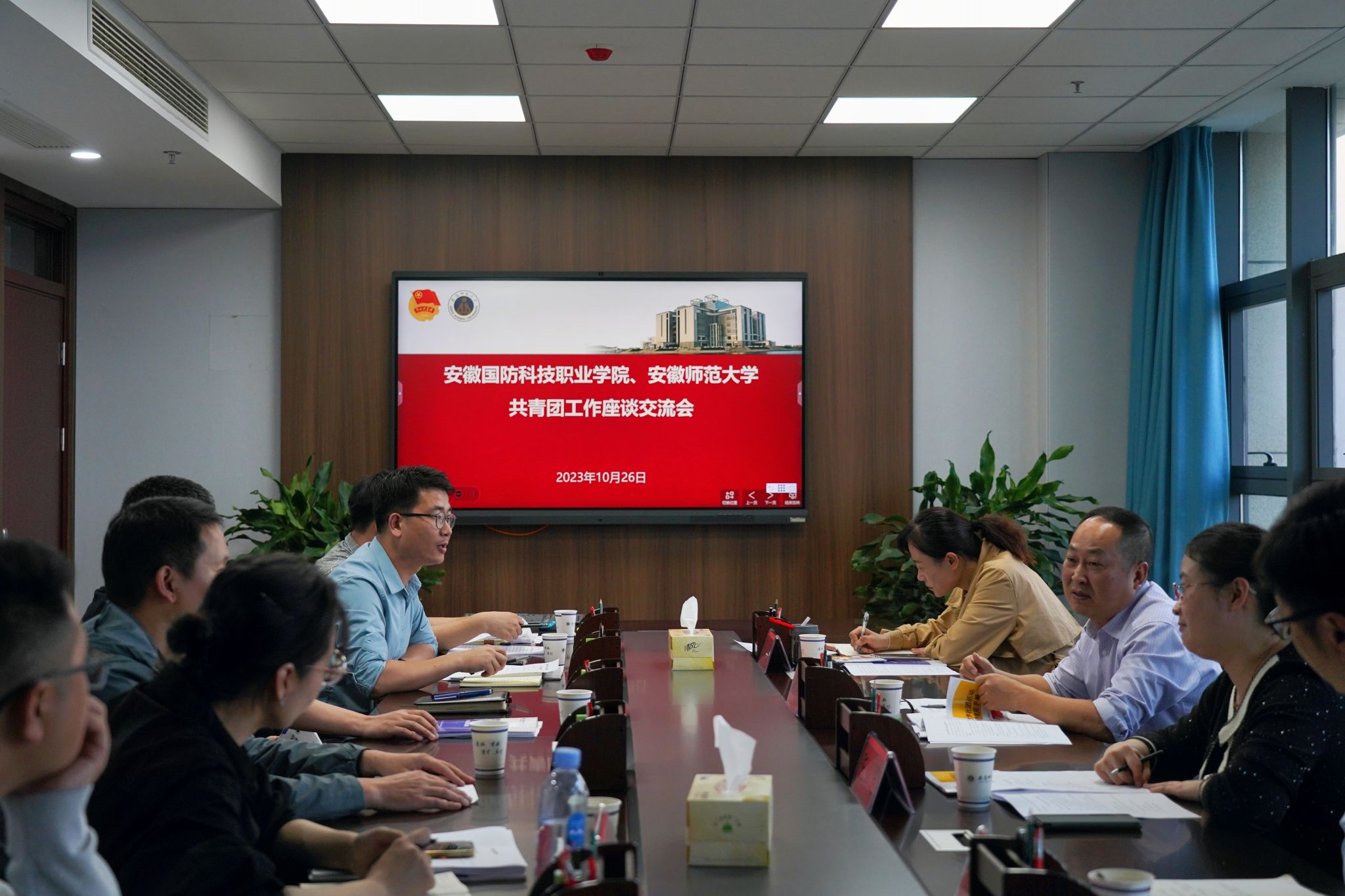 本网讯(团委 张凤)为深入学习贯彻习近平新时代中国特色社会主义思想,贯彻落实习近平总书记关于青年工作的重要思想,切实增强做好共青团工作的责任感和使命感,10月26日,校党委副书记冯伦久率队赴安徽师范大学开展共青团工作调研。校党委委员、宣传部部长、团委书记陈思,校团委副书记张凤,汽车技术学院党总支副书记余桂刚陪同调研。安徽师范大学党委常委、副校长任永,校团委副书记陈骁、张虹,团委组织部、学生社团部负责同志参加交流。