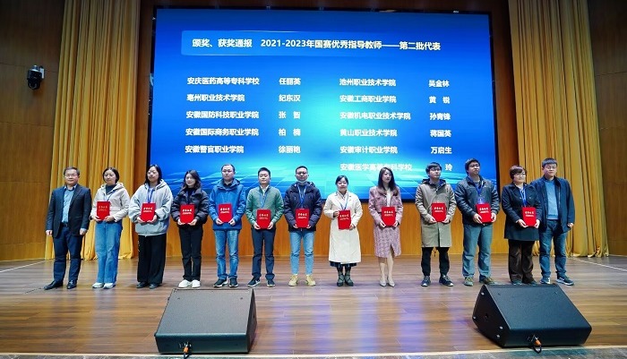 本网讯(教务处 白斌丽)11月21日,安徽省职业院校技能大赛(高职组)总结交流大会暨2023年省赛启动会在安徽商贸职业技术学院举行,校长徐正红带队参会。beat365荣获2022-2023年度安徽省职业院校技能大赛优秀组织奖,beat365信息技术学院张智老师获“国赛优秀指导教师”荣誉称号,电气技术学院学生张奥威作为学生代表分享“技能成才 匠心筑梦”的成长故事。