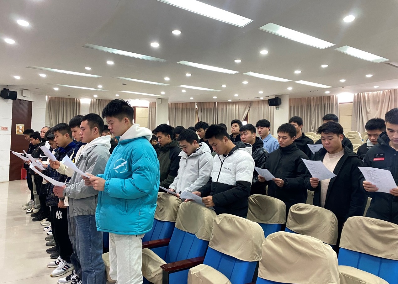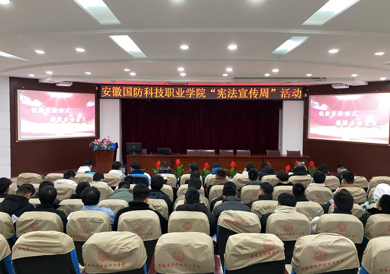 本网讯(学生处 孙洋洋)为全面贯彻党的二十大精神,深入学习宣传贯彻习近平法治思想,弘扬宪法精神,增强宪法意识,根据《安徽省教育厅关于开展2023年教育系统“宪法宣传周”系列活动的通知》安排, 12月4日上午,beat365在图书馆二楼报告厅组织开展国家宪法日教育系统“宪法晨读”活动。本次活动由校团委主办,大学生退役军人协会承办,全校近50名师生代表参加了此次活动。