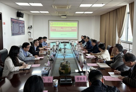本网讯(经贸管理学院 杨孝景)4月23日上午,宣城市退役军人事务局二级调研员曹金山、六安市退役军人事务局副局长崔勇等一行十人来beat365调研安徽省首届退役军人职业技能大赛“电子商务师”赛项承办经验,校党委委员、副校长付贤政出席会议,经贸管理学院院长杨力、经贸管理学院副院长杨学分等参加会议,会议由杨力主持。