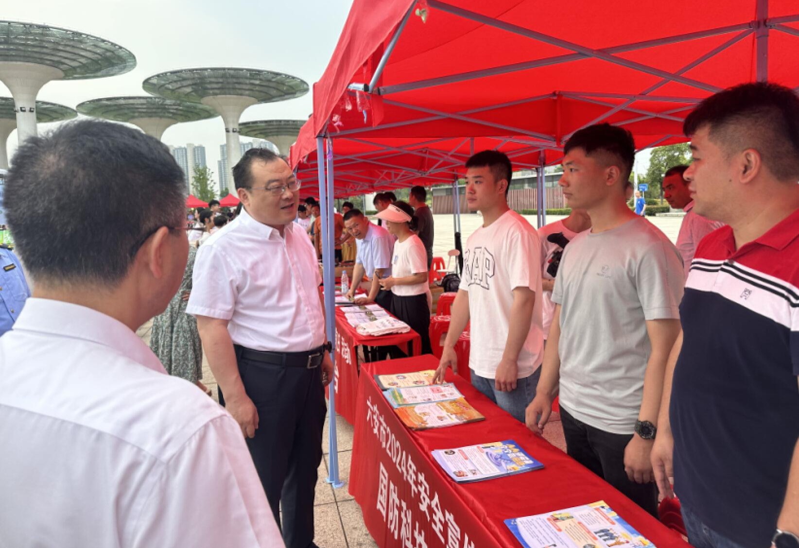 校学生处(安全保卫处)处长孙武为市民开展咨询服务、发放安全宣传资料