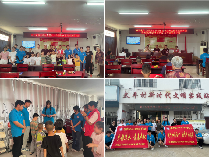 “践行知行合一 助梦乡村振兴”社会实践团:城市建设学院的学子们在六安市金安区三十铺镇开展了一系列志愿者服务活动。他们参与党员集市日活动的筹备与执行工作,为孩子们提供暑期安全教育及非遗文化体验等活动。这些活动不仅丰富了乡村文化生活,也加深了学生们对乡村社会的认识与理解。