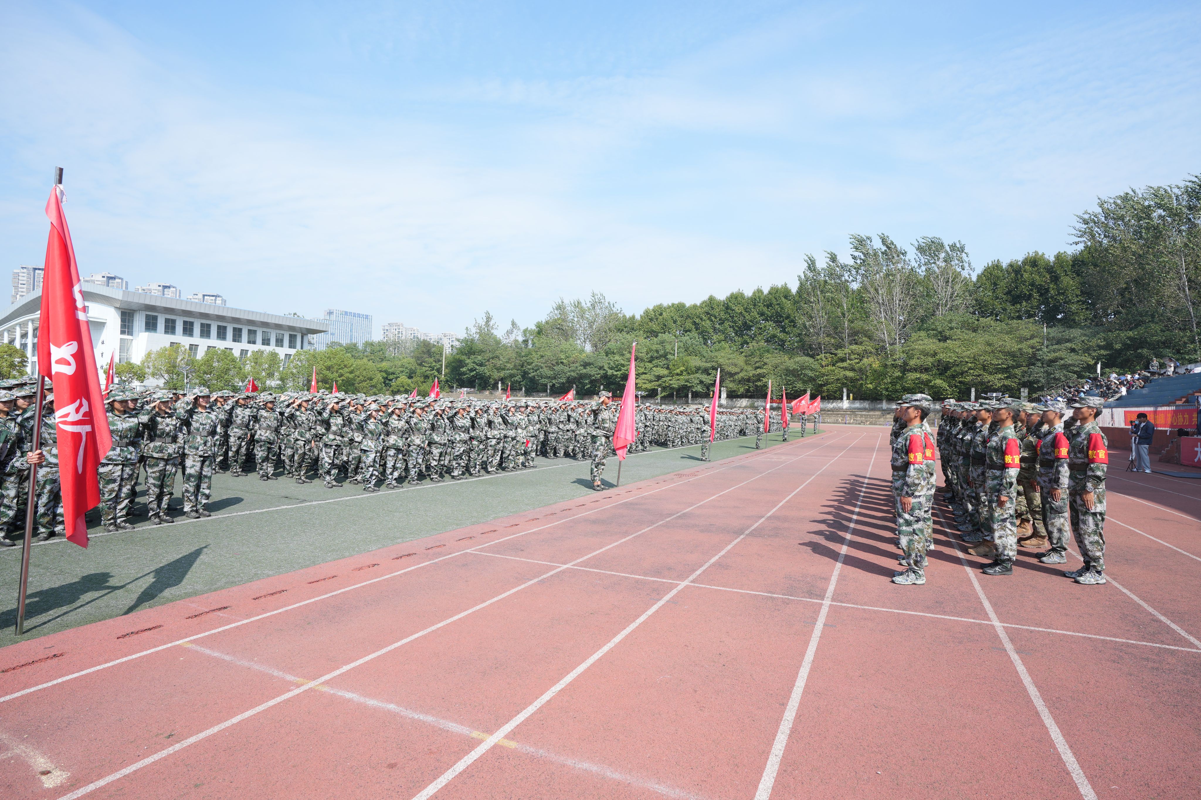 颁奖结束, 3700余名新生向教官们行军礼致谢,感谢教官们20天的辛勤付出和谆谆教诲。