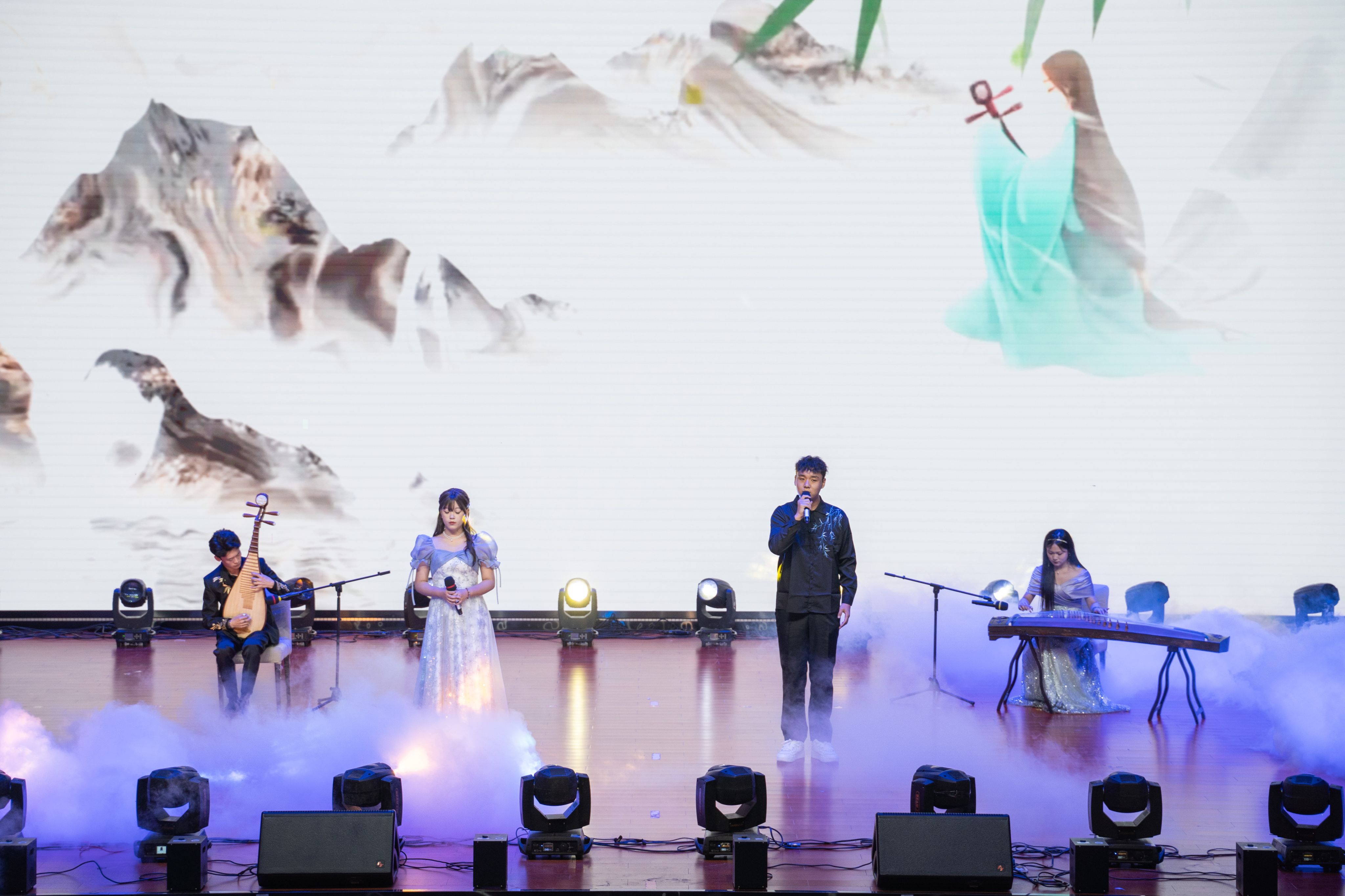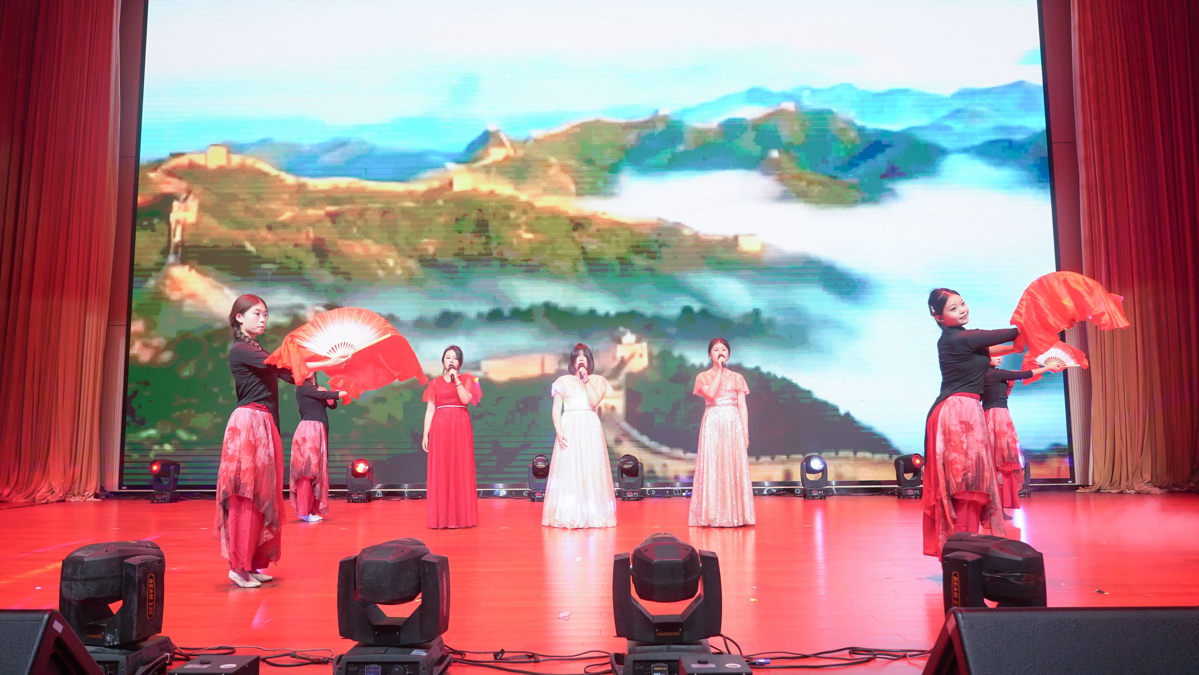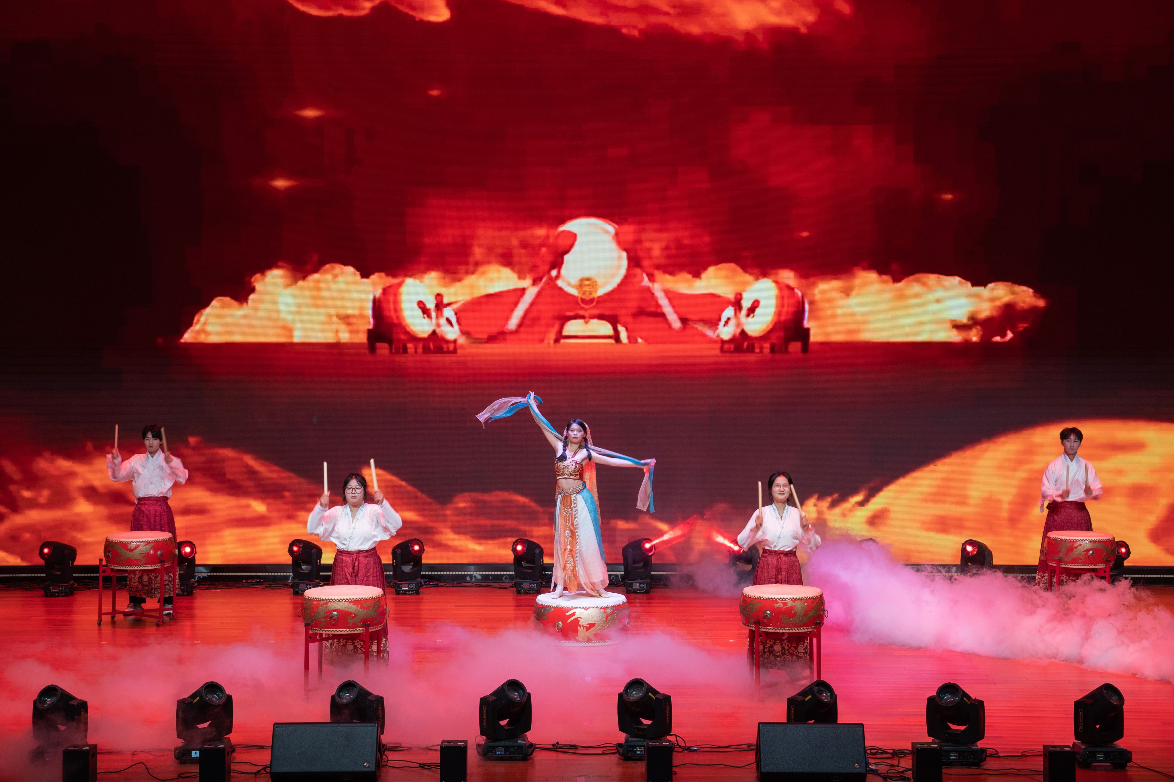 晚会节目共分为三个篇章,第一篇章“光辉岁月”。一群身着华丽服饰的舞者,手持色彩斑斓的龙鼓步入舞台中央,它将传统与现代完美融合,展现出无与伦比的视觉与听觉盛宴。乐器弹唱《沈园外》,乐手以轻柔的指弹技巧,勾勒出《沈园外》那悠扬而略带哀愁的旋律线条。二胡独奏《战马奔腾》,神情专注而激昂。随着她轻轻拉动弓弦,一曲《战马奔腾》骤然响起,瞬间点燃了整个空间的氛围,二胡的音色独特而富有穿透力,在学生的指尖下,它仿佛化作了千军万马,奔腾不息。歌舞《身骑白马》开口的瞬间,声音清澈而富有磁性,如同清晨的第一缕阳光,温柔地穿透心房。