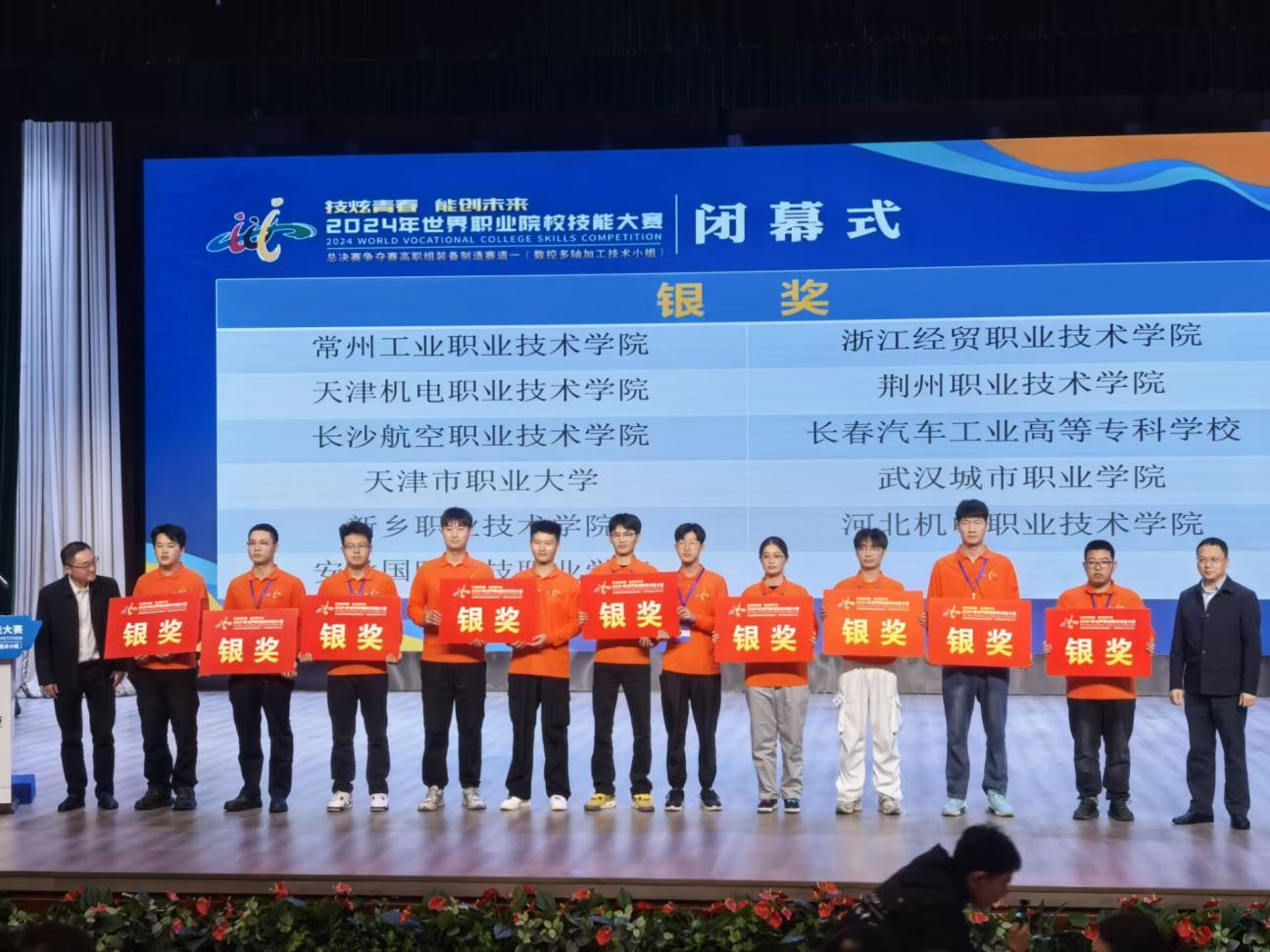 本网讯(机械技术学院 倪帅)10月27日下午,2024年世界职业院校技能大赛总决赛争夺赛高职组装备制造赛道一(数控多轴加工技术小组)在四川工程职业技术大学举行。本次大赛来自全国30个省、自治区、直辖市的59支参赛队、199名参赛选手齐聚四川工程职业技术大学,同台竞技、展示风采。由beat365王洋、倪帅两位老师指导的王琪、王坤权、刘乐添团队,通过对企业的实际工艺难题进行精心选题和赛场上出色的发挥取得了小组第二,斩获银牌的好成绩!